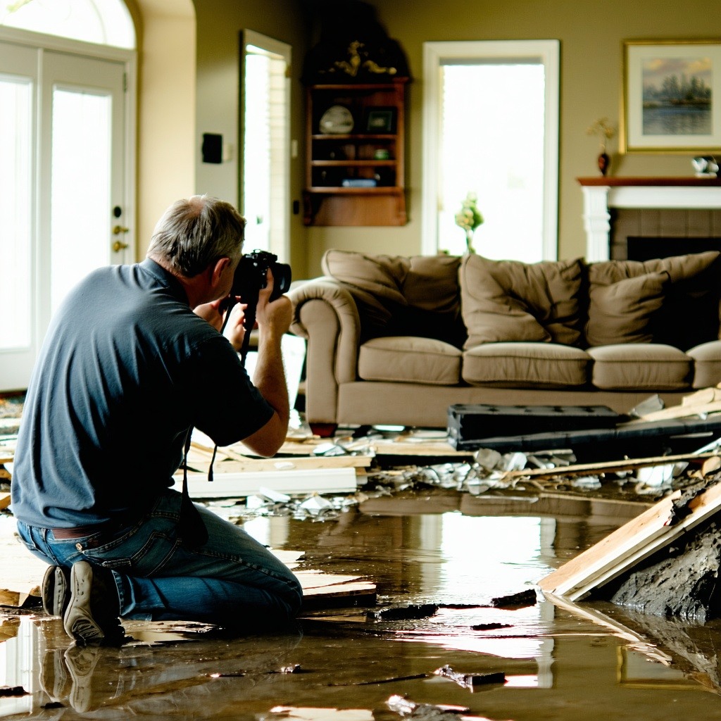 - Document everything: Take detailed photos and videos of every affected room, damaged items, water lines on walls, debris, and anything that’s no longer functional.